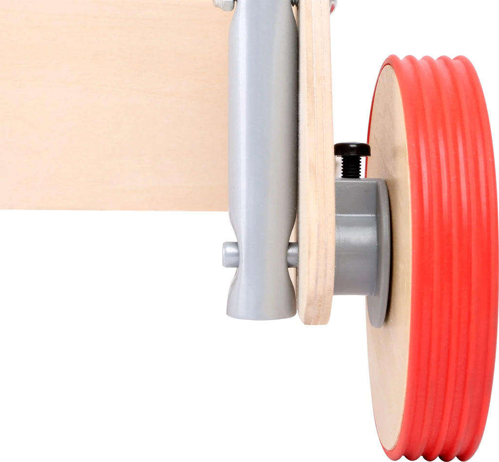 Gåvogn i træ med 52 træklodser i forskellige former og designs.