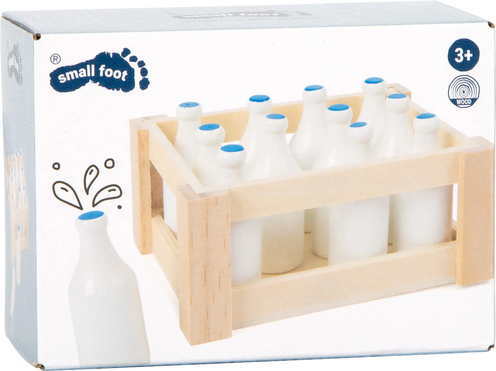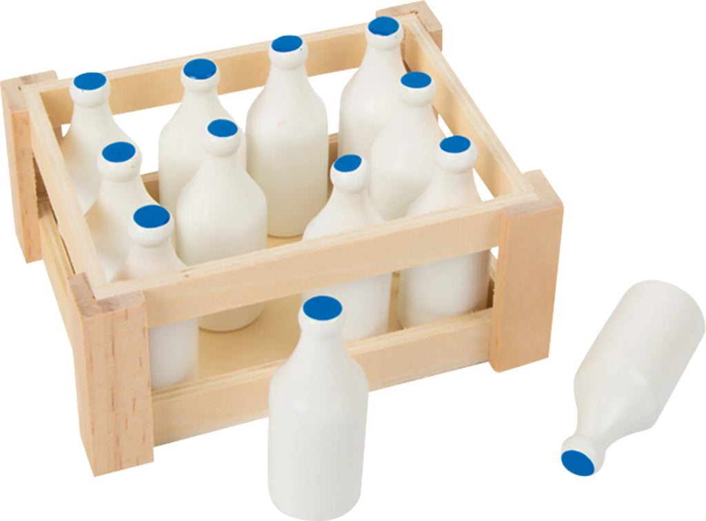 Sæt med 12 mælkeflasker der kan indgå i leg med legekøkken eller bondegård
