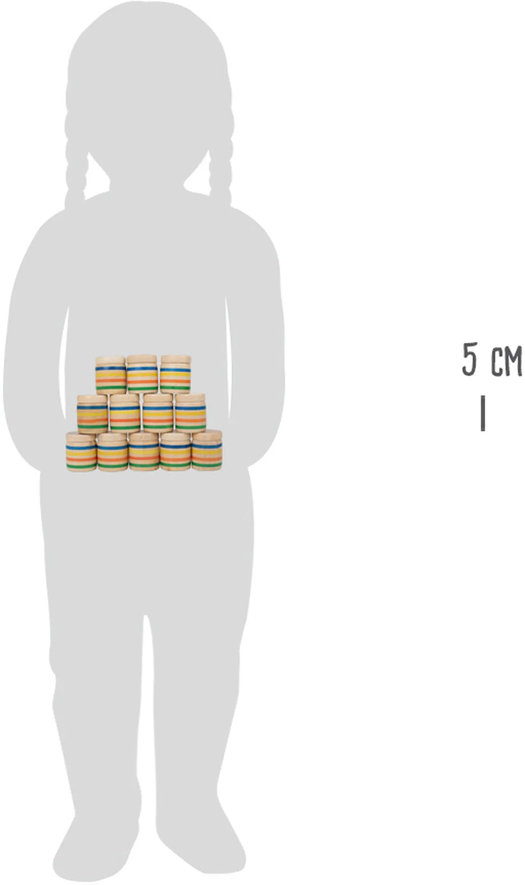 Tolv små trækasser med skruelåg. Hver anden kasse har det samme indhold.