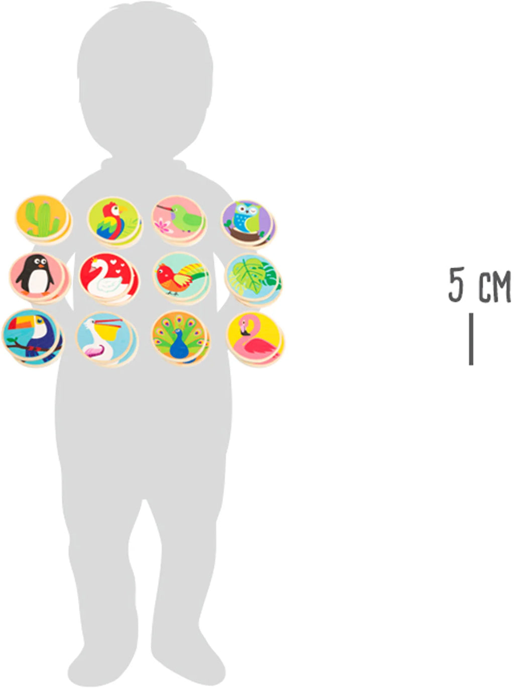 FSC® 100% certificerede træ memo-spil med 24 runde træplader med tryk af farverige dyre- og plantemotiver.