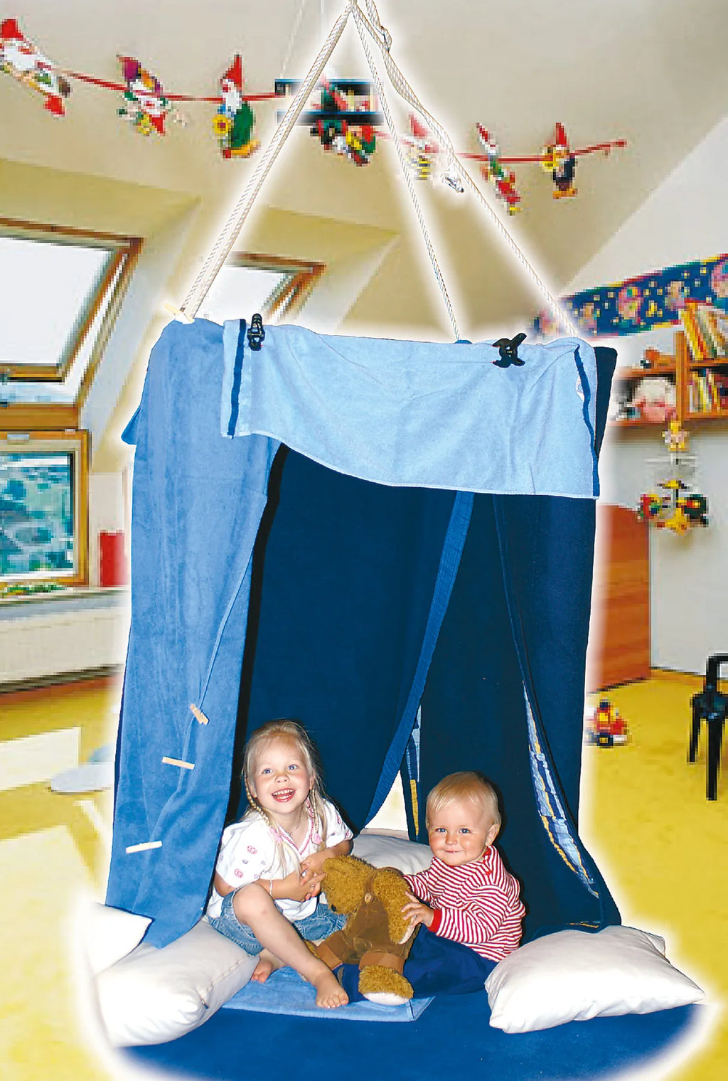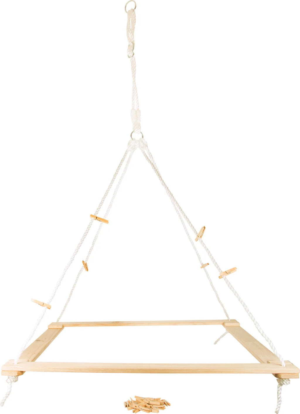 En solid ramme lavet af træ og tovværk, hvor der kan fastgøres tæpper, til at have en fin hule.