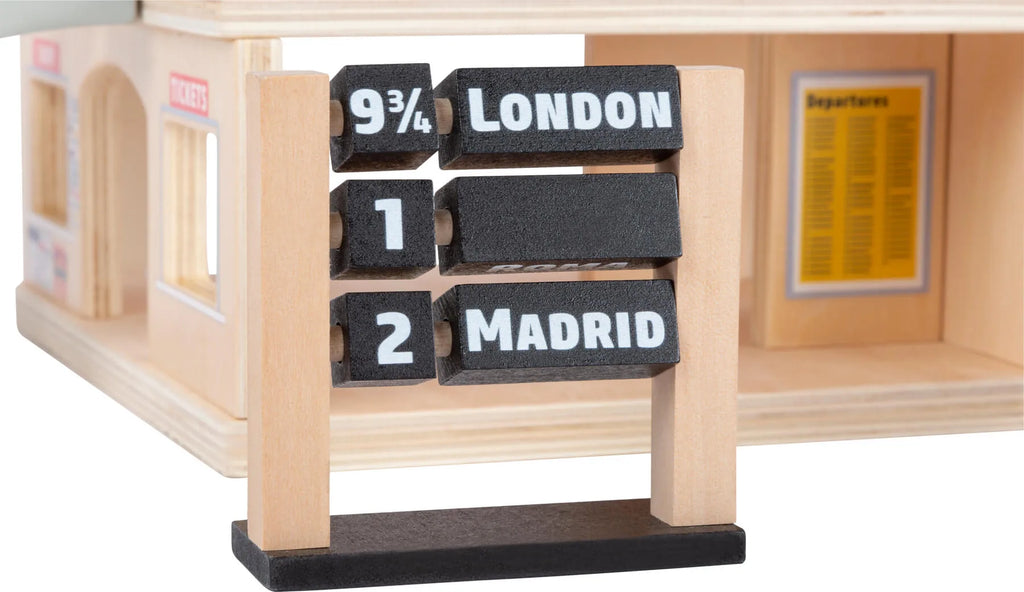 Leveres med masser af tilbehør, en kiosk, billetkontor, billetautomat, vendebar tavle med angivelser af, hvor toget kører hen, stations ur og på øverste etage af stationen er det muligt at tilkoble to jernbanespor og fire på nederste niveau.
