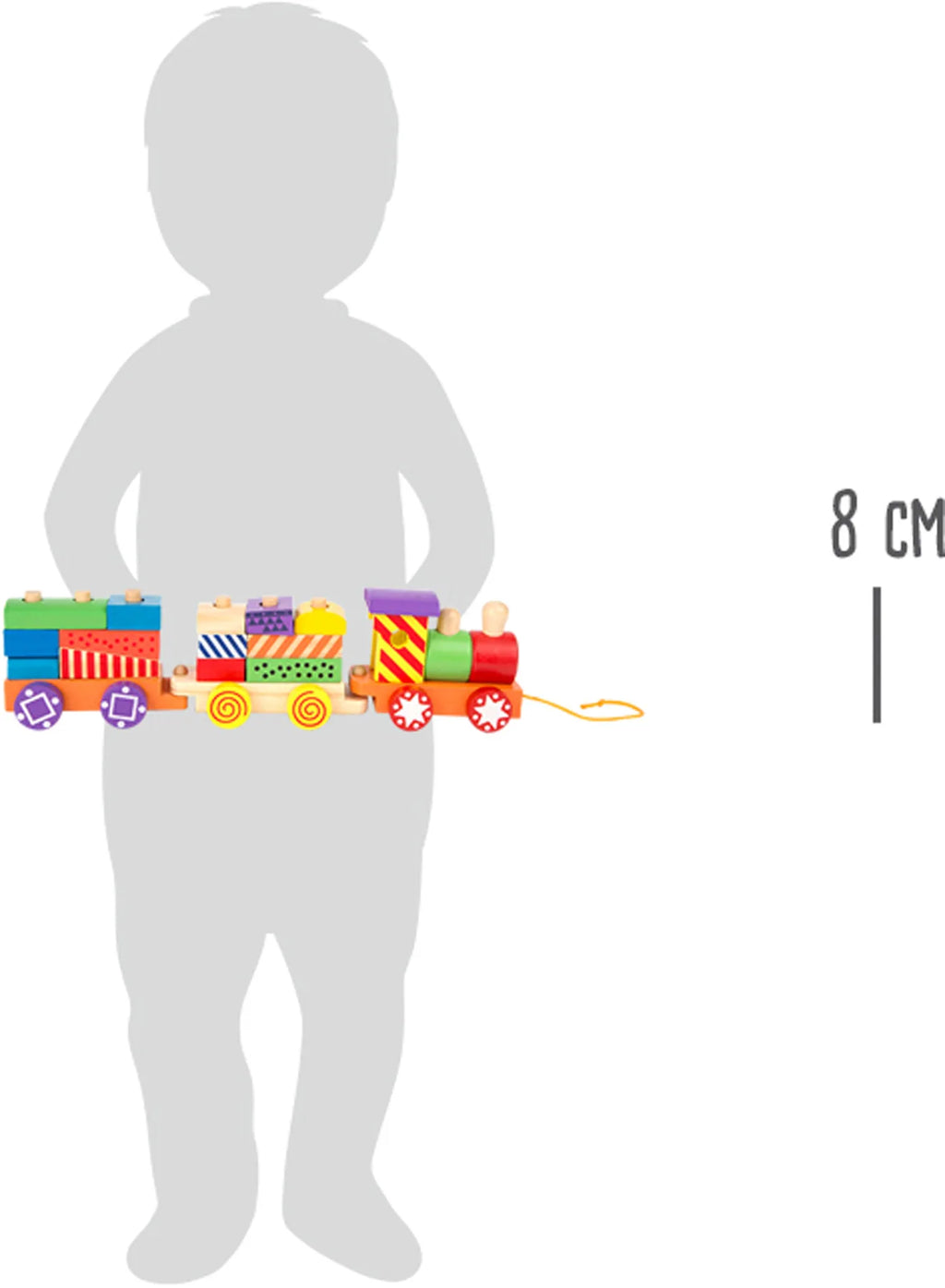Tog og to vogne med klodser, der kan sættes vilkårligt på toget.