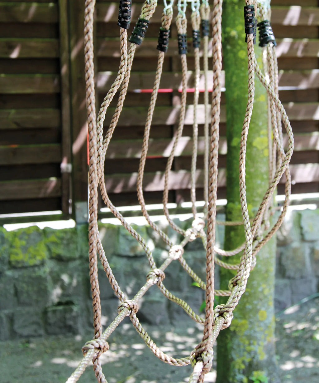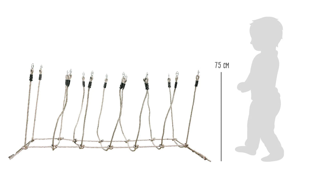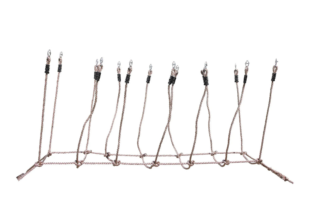 Tov broen er fremstillet i kraftig kunststofreb, leveres med 14 ringe til fastgørelse og kan bære op til 100kg
