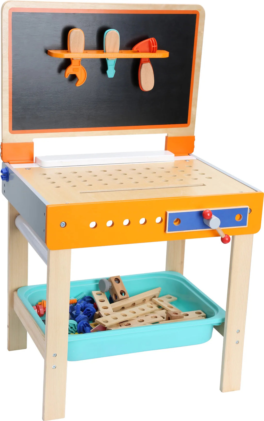 Robuste arbejdsbænk hvor bagvæggen kan foldes ned og bruges som tegnebord.