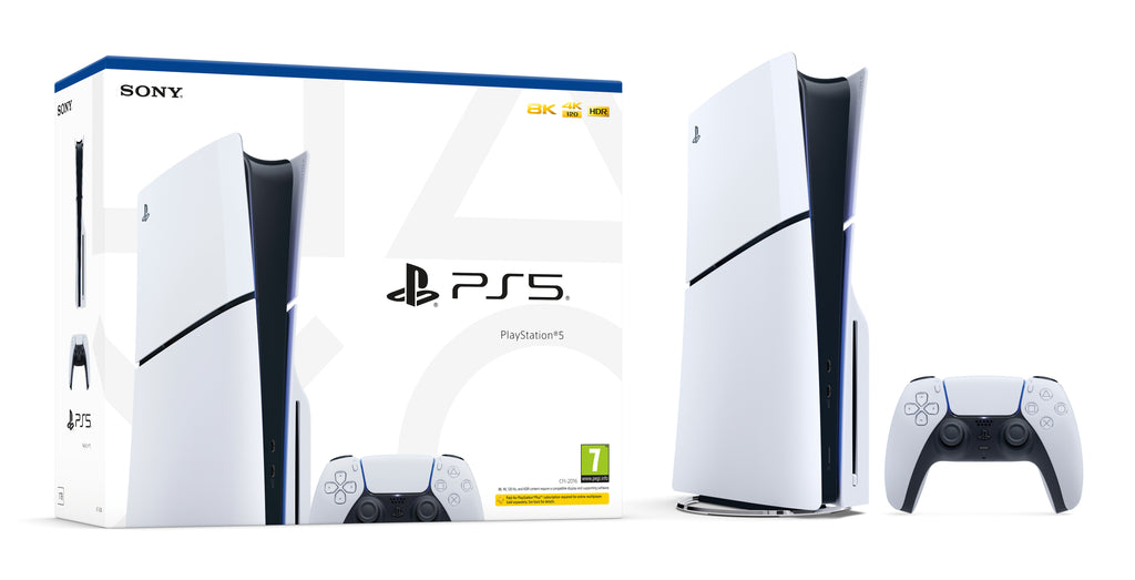 Sony PlayStation 5 (modelgruppe - Slim). Platform: PlayStation 5, Produktfarve: Sort, Hvid, Intern hukommelse: 16384 MB. Lagermedie: SSD, Intern lagerkapacitet: 1,02 TB, Læsehastighed: 5500 MB/s. Ethernet LAN-datahastigheder: 10,100,1000 Mbit/s, Ethernet-grænsefladetype: Gigabit Ethernet, Wi-Fi-standarder: 802.11a, 802.11b, 802.11g, Wi-Fi 4 (802.11n), Wi-Fi 5 (802.11ac), Wi-Fi 6 (802.11ax). HD-type: 8K Ultra HD, Understøttede videotilstande: 2160p, 4320p, Lyddekodere: DTS, DTS 2.0, DTS 5.1, DTS-HD, DTS-HD Master Audio 5.1, Dolby Digital 5.1, Dolby Digital Plus,.... Pakkebredde: 431 mm, Pakkedybde: 169 mm, Pakkehøjde: 359 mm