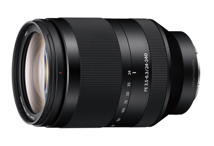 Sony SEL24240. Komponent til: SLR, Objektivstruktur (elementer/grupper): 17/12, Nærmeste fokuseringsafstand: 0,5 m. Maksimal forstørrelse: 0,27x, Kapabilitet: Sony. Produktfarve: Sort. Diameter: 8,05 cm, Filterstørrelse: 72 mm, Længde: 118,5 mm. Dybde: 118,5 mm