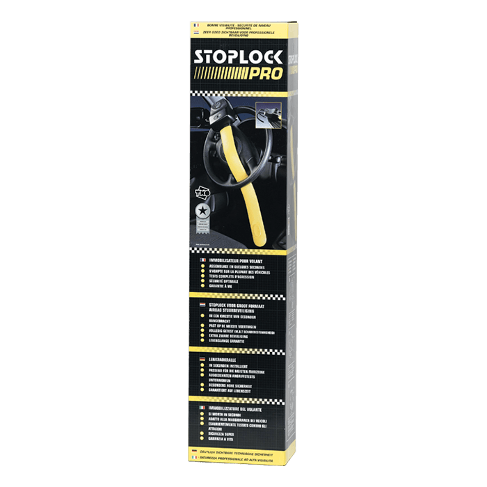 Stoplock Pro ratlåsen er en meget kraftig og sikker løsning til at beskytte din bil. Den er designet i en opsigtsvækkende gul farve, hvilket gør den let at få øje på og dermed afskrækker potentielle tyve.
