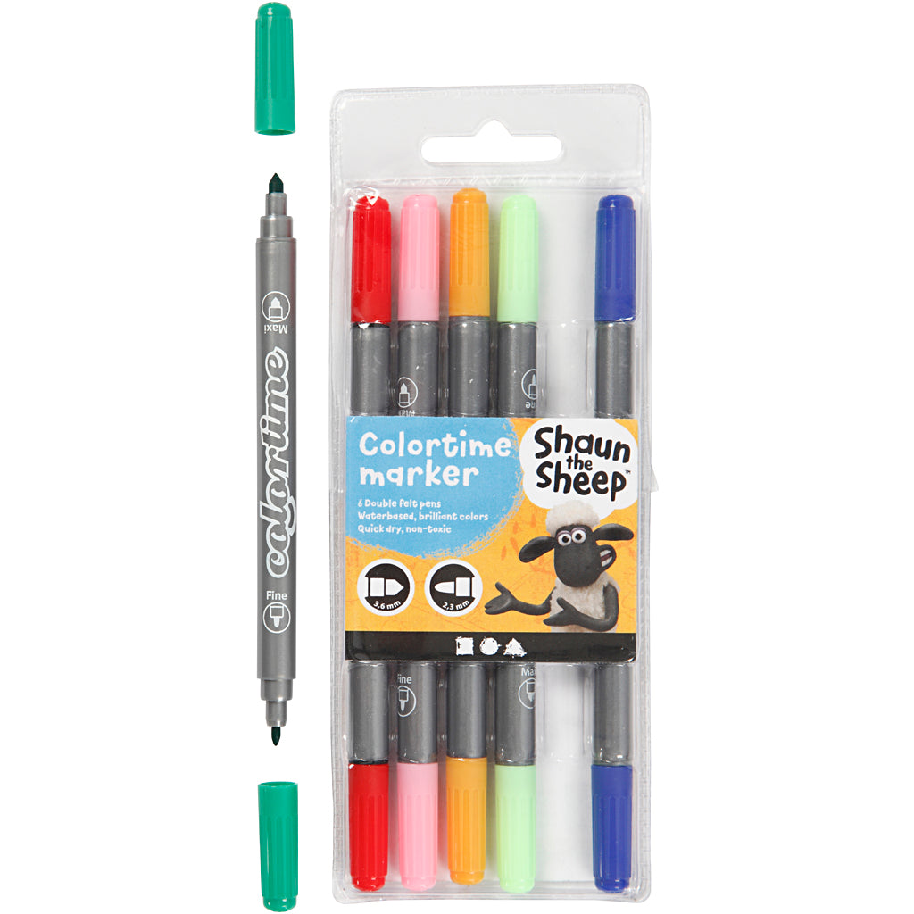 Tegnetusch, streg 2,3+3,6 mm, ass. farver, 6stk./ 1 pk.