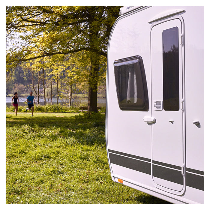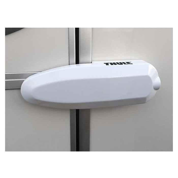 Tre hvide sikkerhedslåse i høj kvalitet til autocampere, campingvogne, varevogne og minibusser. Låsen har 3 forskellige monteringsmuligheder med den samme lås: