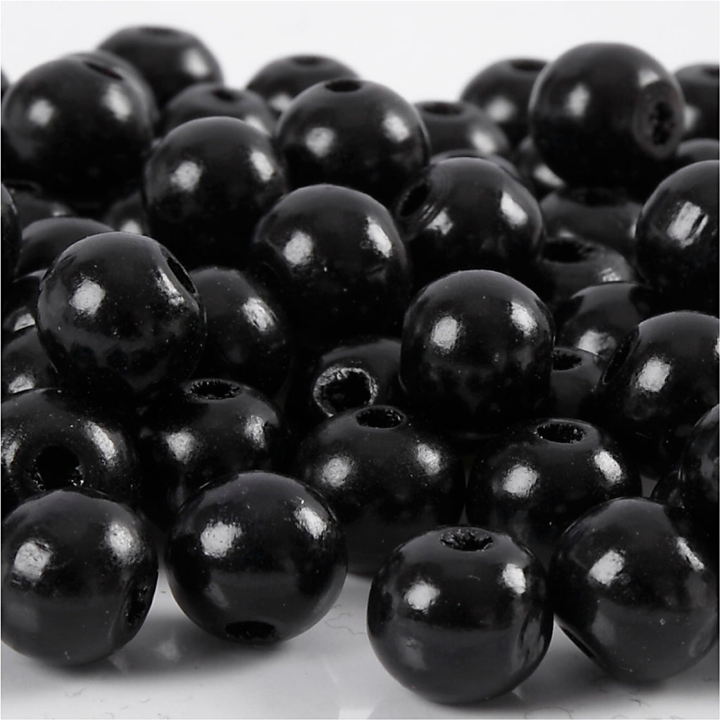 Træperler i Sort - 12 mm