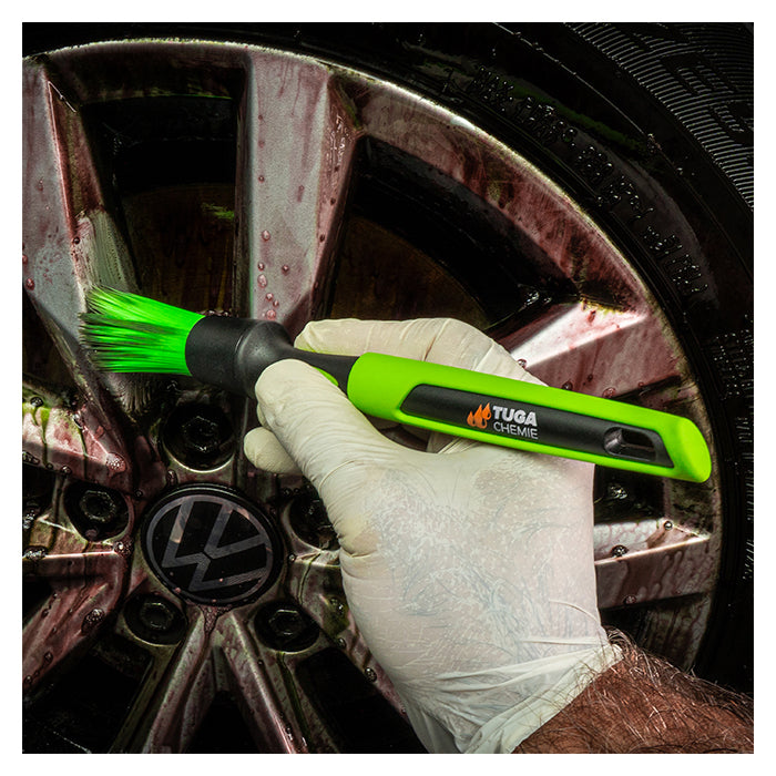 Den specialudviklede Tuga fælgpensel er den ideelle makker til Alu-Teufel Spezial fælg-rens. Penslen er designet til at forstærke rengøringseffekten og fjerne selv det mest genstridige snavs.