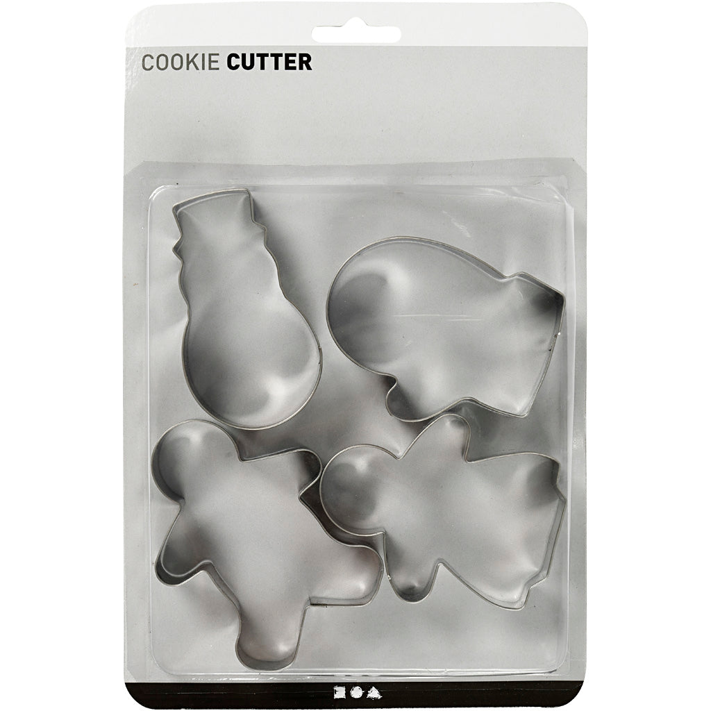 Udstiksforme, kagekone, kagemand, vante og snemand, H: 8 cm, 4 stk./ 1 pk.