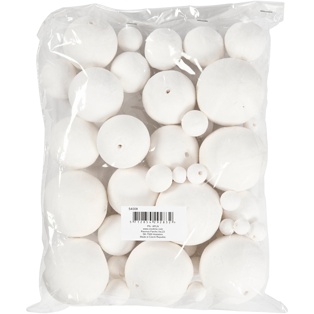 Opdag vores vatkugler i størrelserne 12, 15, 20, 30, 40 og 50 mm. Hver pakke indeholder 42 stk. i en ren hvid farve, perfekt til en række kreative projekter.