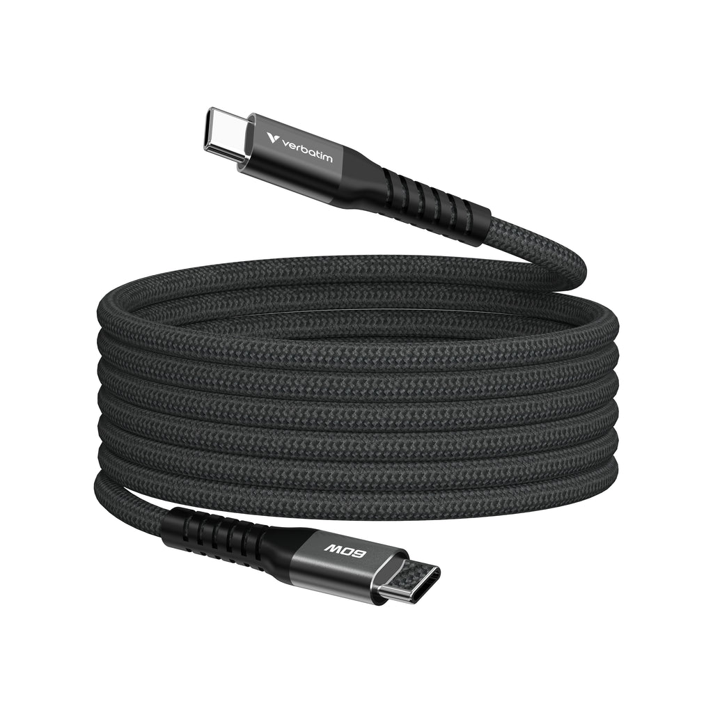 Verbatim 31859. Kabellængde: 1,2 m. Stik 1: USB C, Stik 2: USB C, USB version: USB 2.0, Maksimal dataoverførselshastighed: 0,48 Gbit/sek., Produktfarve: Sort