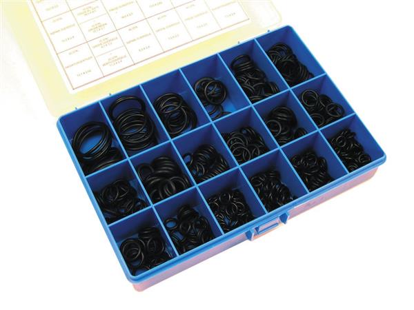 500 gængse o-ringe fordelt på 20 forskellige størrelser som er modstandsdygtig mod vand, olie, hydrolikolie, smørefedt, kulbrinte og benzin